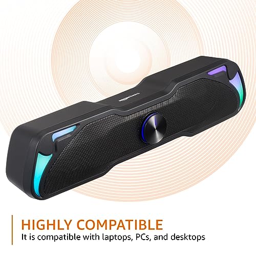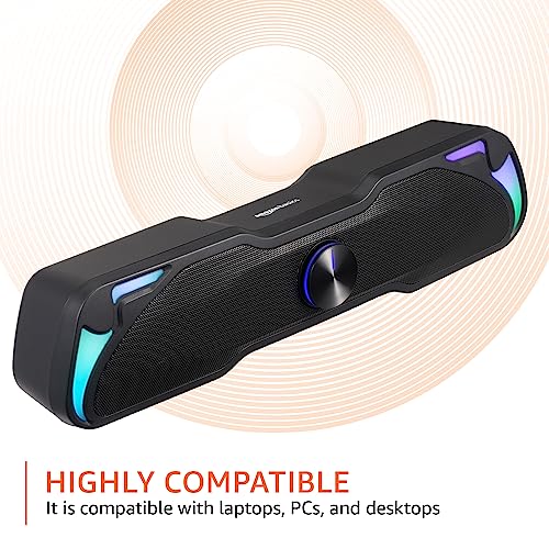 Amazon Basics 6W Multimedia PC Gaming Soundbar with Aux Connectivity, USB Support, Volume Control, and RGB Lights