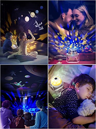 🪐【Night Light Projector for Kids & Decoration】 With a rotatable lampshade, it can be used as a night light. When the lampshade is removed, it can instantly turn into a projector. With this projector,You can create a romantic galaxy in the room. it not only is a great decoration for weddings, birthdays, and other holiday parties,but also can be used as a Night Light Projector for Kids.