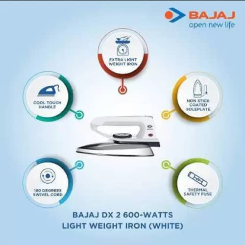 BAJAJ DX 2 L/W Dry Iron 600 W Steam Iron (Blue, White) Price: ₹996.00(as of Sep 11,2025 13:13:20 UTC – Details) Home Appliances