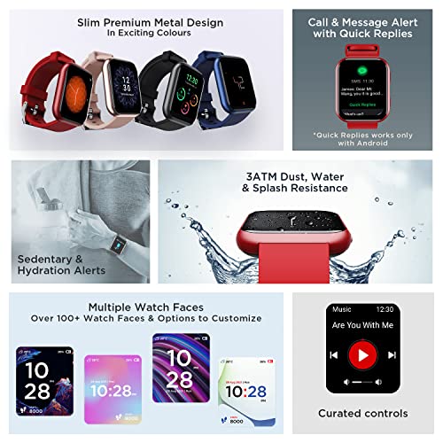 Design & Watch Faces- Slim premium metal design, and multiple watch faces with customizable options help match your OOTD, every day!;HR & SpO2- The watch comes with a 24×7 heart rate & SpO2 monitor (blood oxygen levels,) and sleep monitoring features to keep a tab on your overall health.