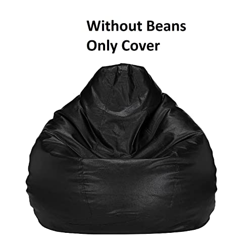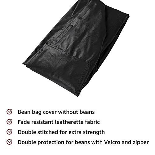 Caresful Bean Bag Cover Leatherette Black Sofa Cover Chair Sturdy Zipper Recliner Bean Bag Cover Organizing Storage Water Resistant Furniture (No Filler)