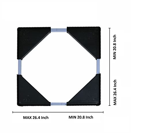 ✔️ Min. Size: (16 X 19-inch), Max. Size: (26 X 32-inch) (Both Length & Width of the Stand is Adjustable), Height: 3.5″ Extendable up to 4.5″