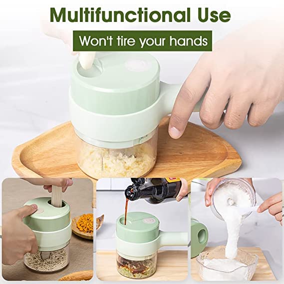 Heria 4 in 1 Food Processor Electric Vegetable Cutter USB Cordless Vegetable Slicer Chopper Electric Small Food Processor Price: ₹1,398.00(as of Jul 21,2025 03:47:08 UTC – Details) Compact in designScores high on the aspect of functionalityMaterial Type: Plastic; Size Name: RegularEngineered using the latest technology