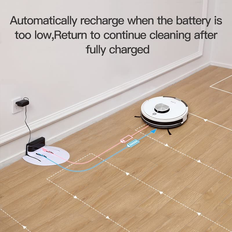 SELF-RECHARGES AND RESUMES CLEANING: If the robot has not finished the layout before the battery runs lower than 10%, the robot will self-recharge to 100% and then continue cleaning from the breakpoint. Ideal for large houses (2500 sqft or more).