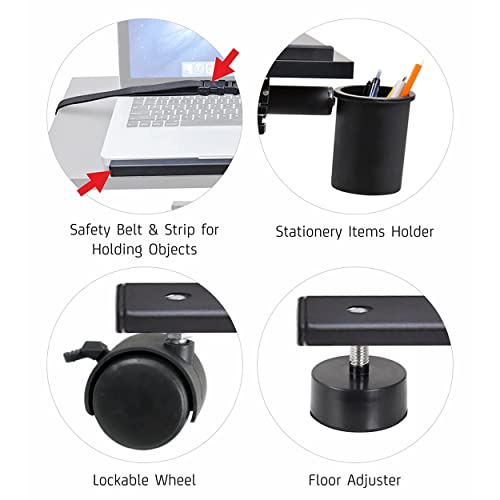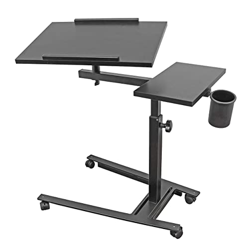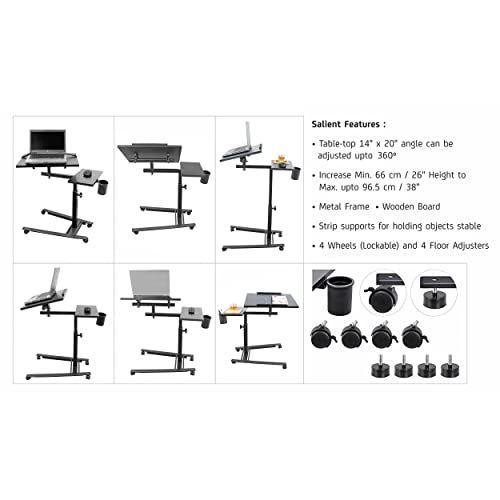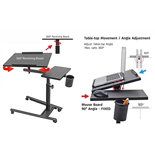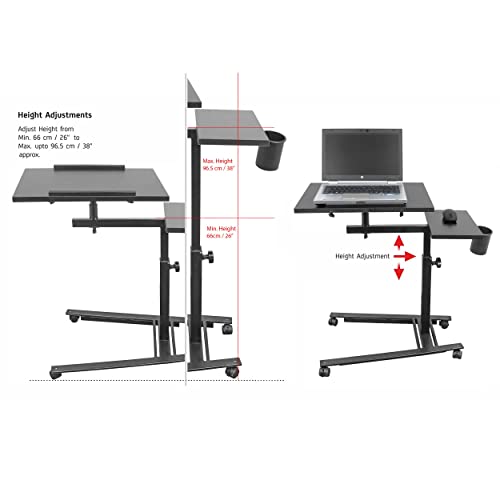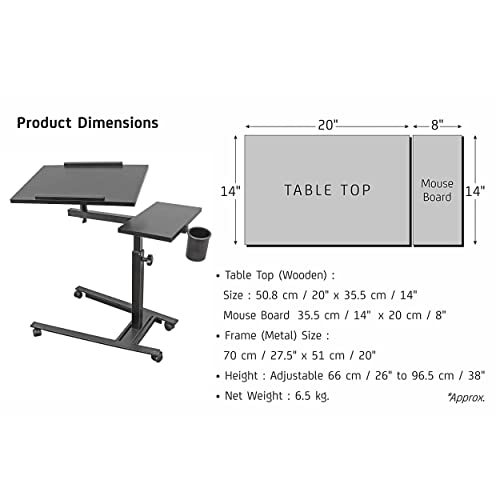 Isomars Multipurpose Laptop Table Study Desk, Caster Lockable Wheels & Height Adjustable for Breakfast Table, Work From Home & Online Classes – Length – 50cm, Breadth – 35cm, Mouse Board 35.5cm X 20cm