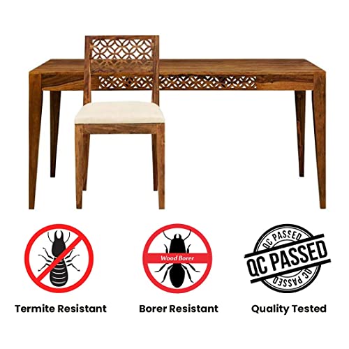 Each piece is unique as it is individually hand crafted by skilled master craftsmen. Made of Sheesham Wood Dining Table With 6 Chairs / Seasoned wood With Chemical Treatment To Protect Wood From Termite & Borer
