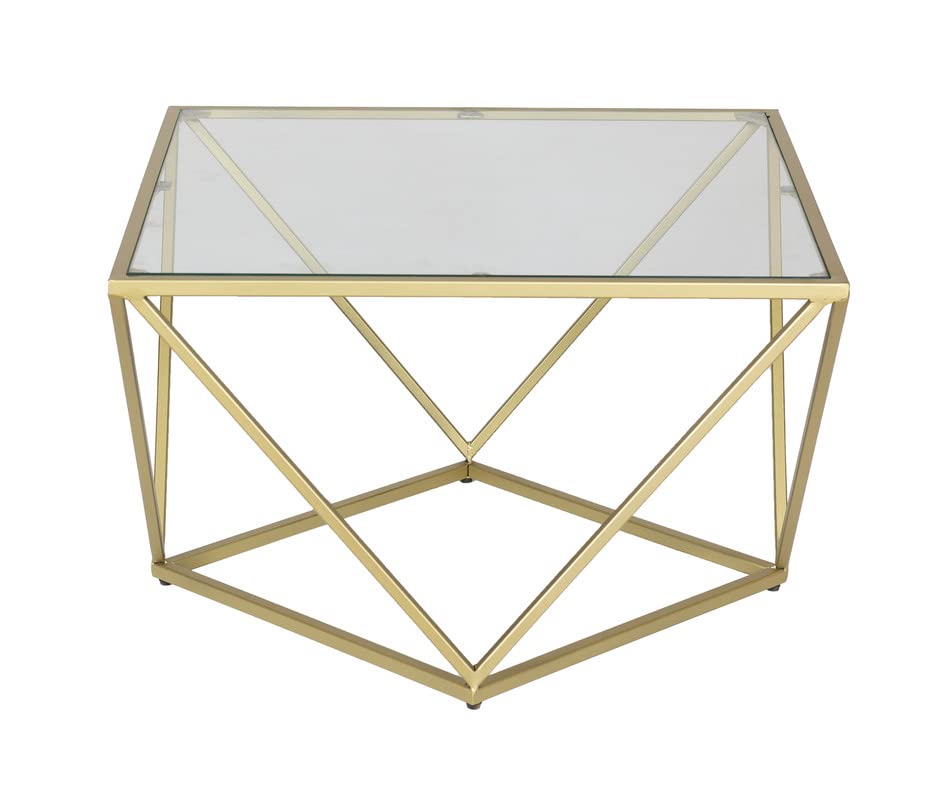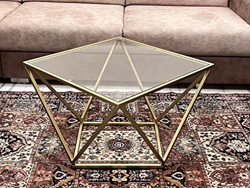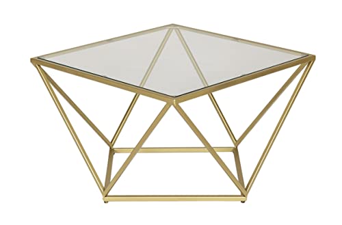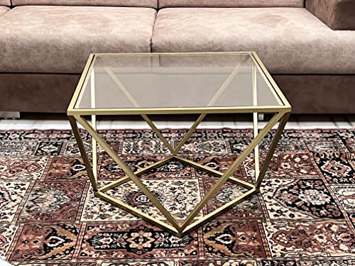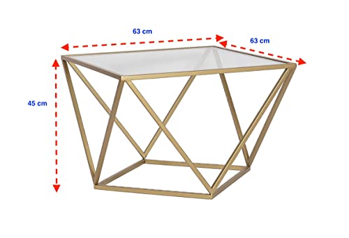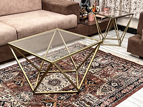 Kraft Bazaar Valerie Gold Coffee Table | Centre Table for Living Room | Centre Table with Glass top | (Finish Gold, 8 mm Toughened Glass)