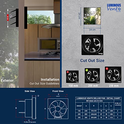 Included in the Box: Luminous Vento Deluxe 200mm, Warranty Card and an Installation guide
