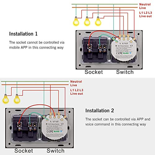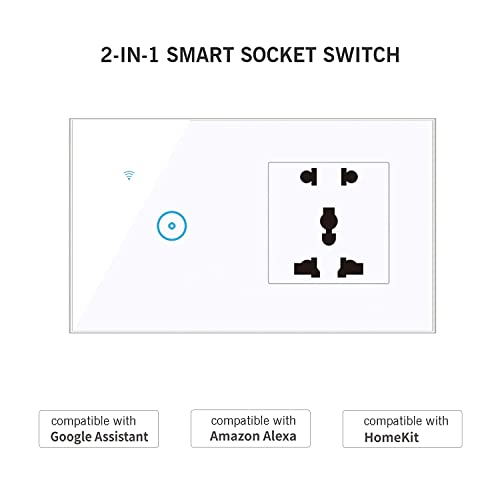Ubersweet® Homgeel 95-250V Smart Wall Outlet with 1 Gang Touch Light Switch Smart Life APP Remote Control, Voice Control, Touch Control Compatible with Alexa Google Assistant Smart Switch Plug Outlet
