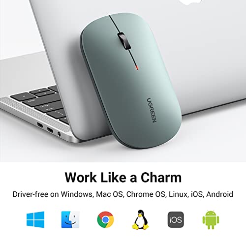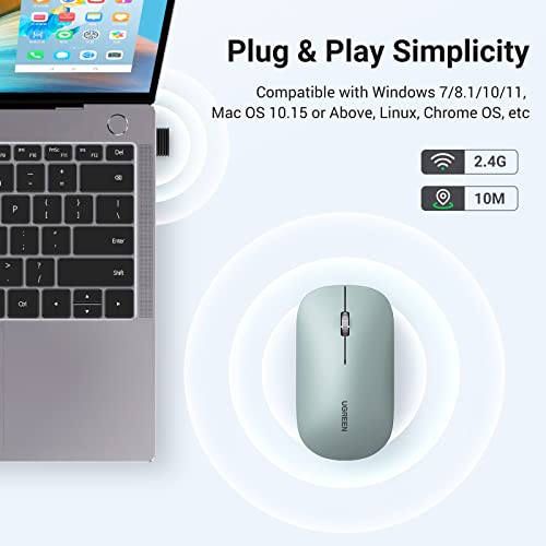UGREEN Wireless Mouse 2.4G Silent Computer Mouse with USB Receiver, Ultra Slim Optical Cordless Wireless Mouse, 4000 DPI, Small Flat Portable Mice for PC, Laptop, Computer, Chromebook, MacBook – Green